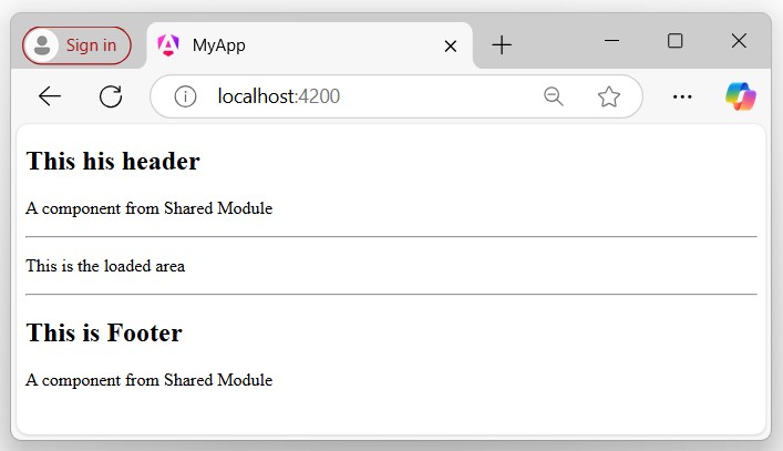<h2>This his Header</h2> <p>A component from Shared Module</p>