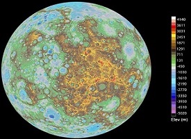 NASAs MESSENGER (MErcury Surface, Space ENvironment, GEochemistry, and Ranging) mission has unveiled the first global digital elevation model (DEM) of Mercury.