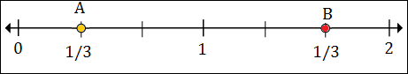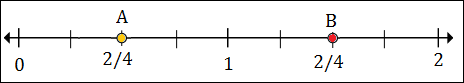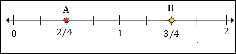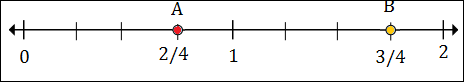To plot 1/2 or 2/4, we put a point between 0 and 1, 2 marks to the right of 0.