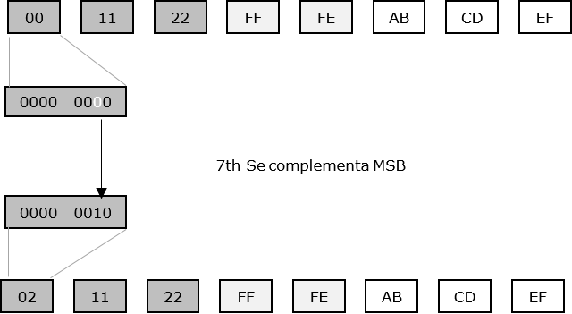 Para convertir la EUI-64 ID en IPv6 identificador de interfaz, el ms importante 7 poco de la EUI-64 ID se complementa. Por ejemplo: