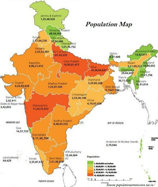 Throughout the country, India has a highly uneven pattern of the population distribution.