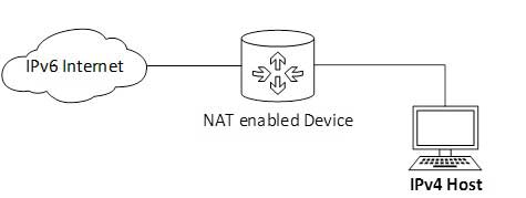 A host with IPv4 address sends a request to IPv6 enabled Server on Internet which does not understand IPv4 address. In this scenario, NAT-PT device can help them communicate. When IPv4 host sends a request packet to IPv6 Server, NAT-PT device/router, strips down the IPv4 packet, removes IPv4 header and adds IPv6 header and passes it through the Internet. When a response from IPv6 Server comes for IPv4 host, the router does vice versa.