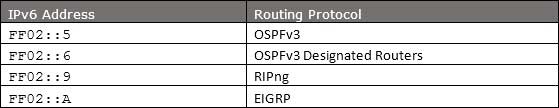 The above table shows the reserved multicast addresses used by interior routing protocol.