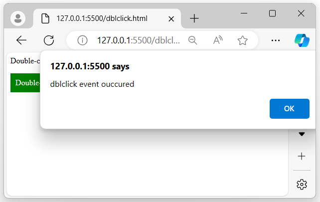 The above program displayed a message, once we double-clicked on that message, an alert pop-up message will appear on your browser screen −