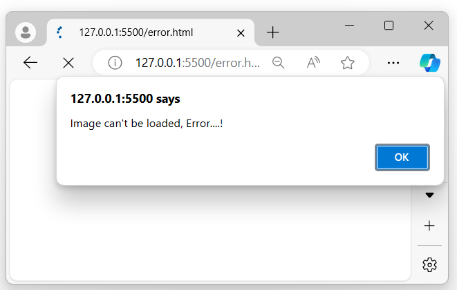 If the image source file is missing or the image fails to load correctly, a pop-up alert will be displayed on your browser screen −