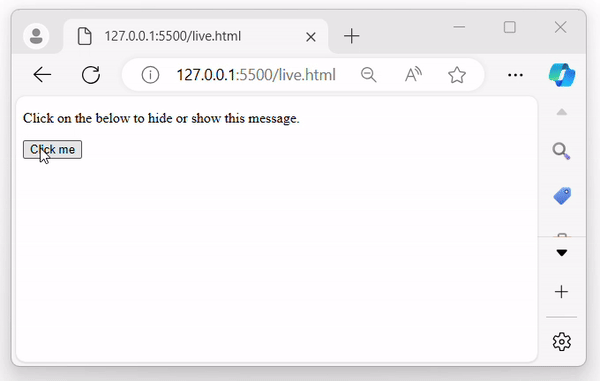 After the above program is executed, it displays a message within a paragraph element. When the button is clicked, the message will be hidden −