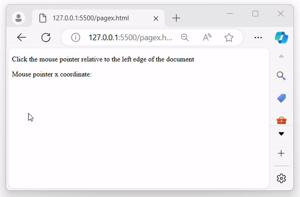 The above program returns the X-coordinates of the mouse pointer when clicked, relative to the left edge of the document as −