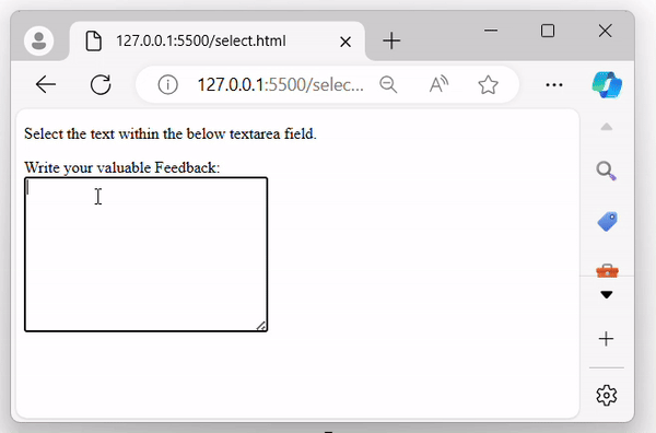<p>Select the text within the below textarea field.</p>
