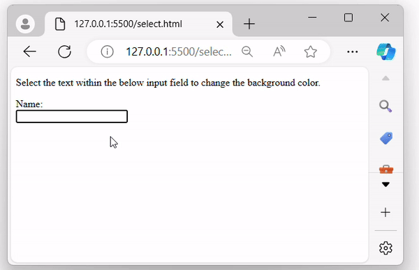 <p>Select the text within the below input field to change the background color.</p>