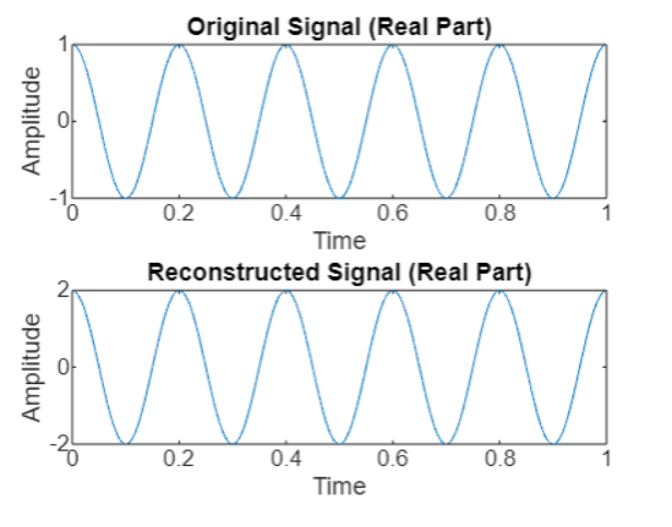 - The real part of the original and reconstructed signals is plotted for comparison.