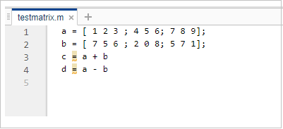 a = [ 1 2 3 ; 4 5 6; 7 8 9]; b = [ 7 5 6 ; 2 0 8; 5 7 1]; c = a + b