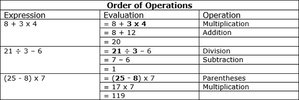When performing arithmetic operations, a set of rules are used in order to have clarity and avoid confusion. Mathematicians have come up with a standard order of operations for calculations involving more than one arithmetic operation. This order of operations is given by Parentheses, Exponent, Multiplication, Division, Addition and Multiplication (PEMDAS) Rule.