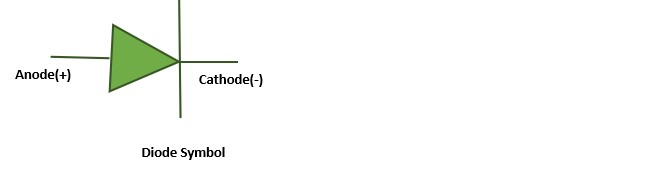 A diode is a unidirectional semiconductor device that allows current to flow in one direction only. It is classified as an uncontrolled device because its turn-on and turn-off behavior is determined by the applied voltage and current. Following is the symbol of diode −