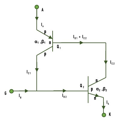 For transistor Q1, emitter current IE = anode current Ia and IC = collector current IC1. Therefore , for Q1, −