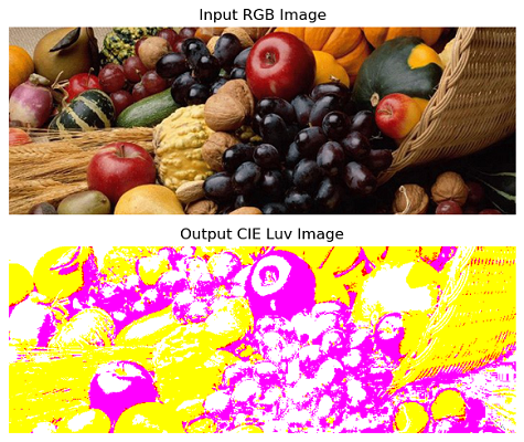The following example demonstrates the conversion of an image in RGB color space to CIE Luv color space using color.rgb2luv() method.