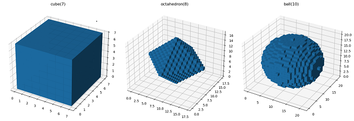 This example demonstrates the use of functions from the skimage.morphology library to create 3D footprints. Each plot is labeled with the corresponding function used to generate the structuring element.