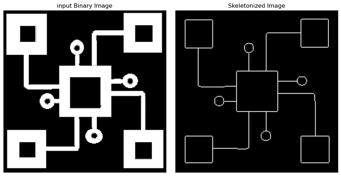- image (ndarray): This parameter should be a 2D or 3D NumPy array representing the binary image you want to skeletonize. In the binary image, zeros represent the background, and nonzero values represent the foreground object of the image.